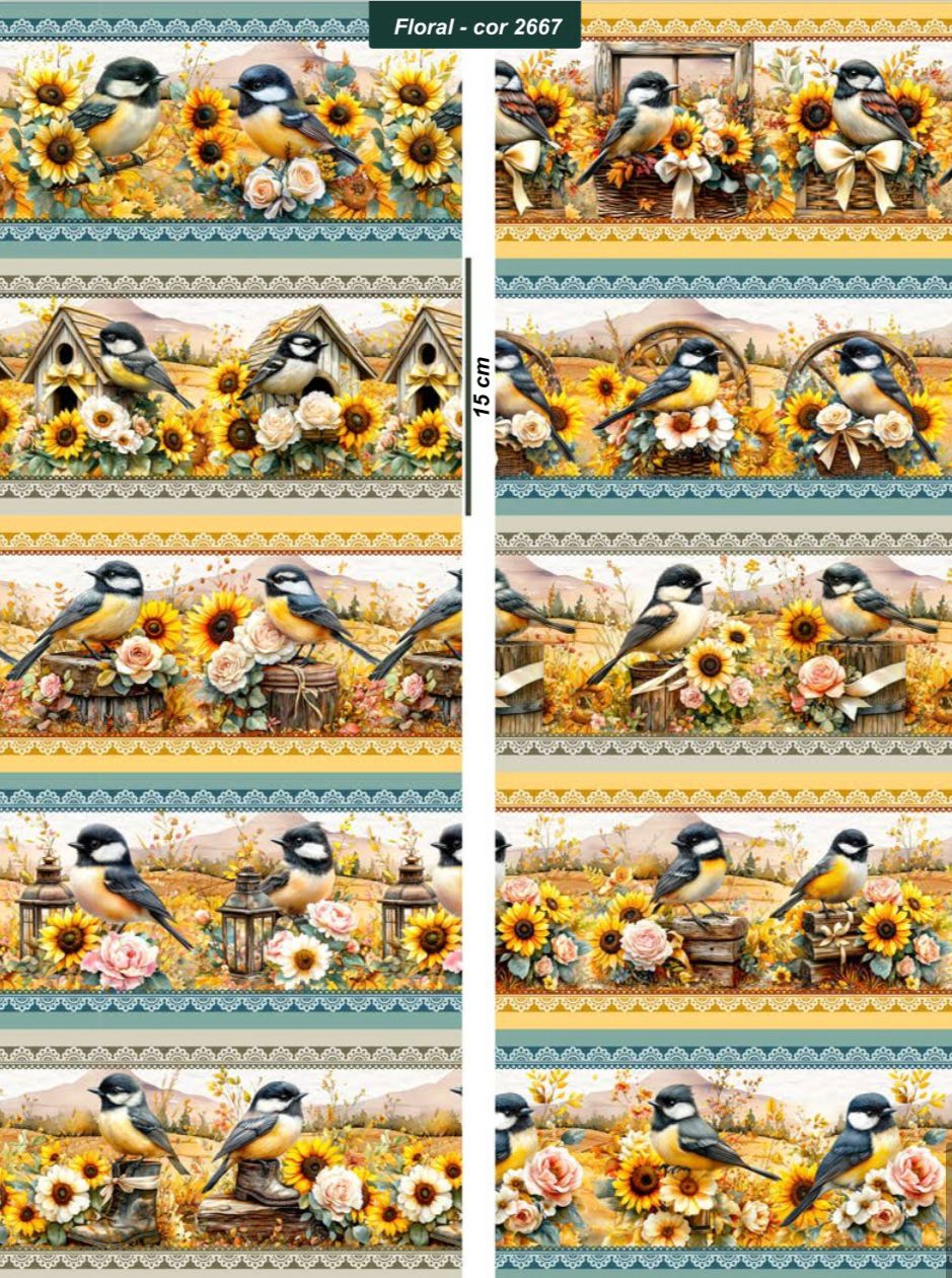 Flores e Passáros IG 0.55cmX1.50mt